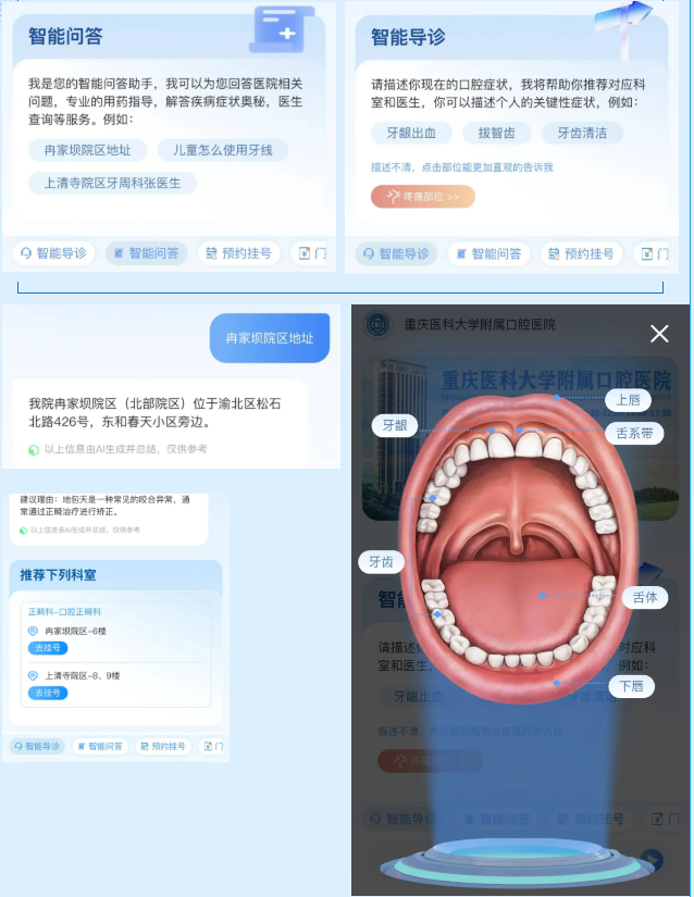 近日,附属口腔医院AI导诊及问诊功能正式上线运行,通过智能化手段为全年龄段患者搭建高效就医桥梁,让口腔诊疗更精准、更省心、更快捷。