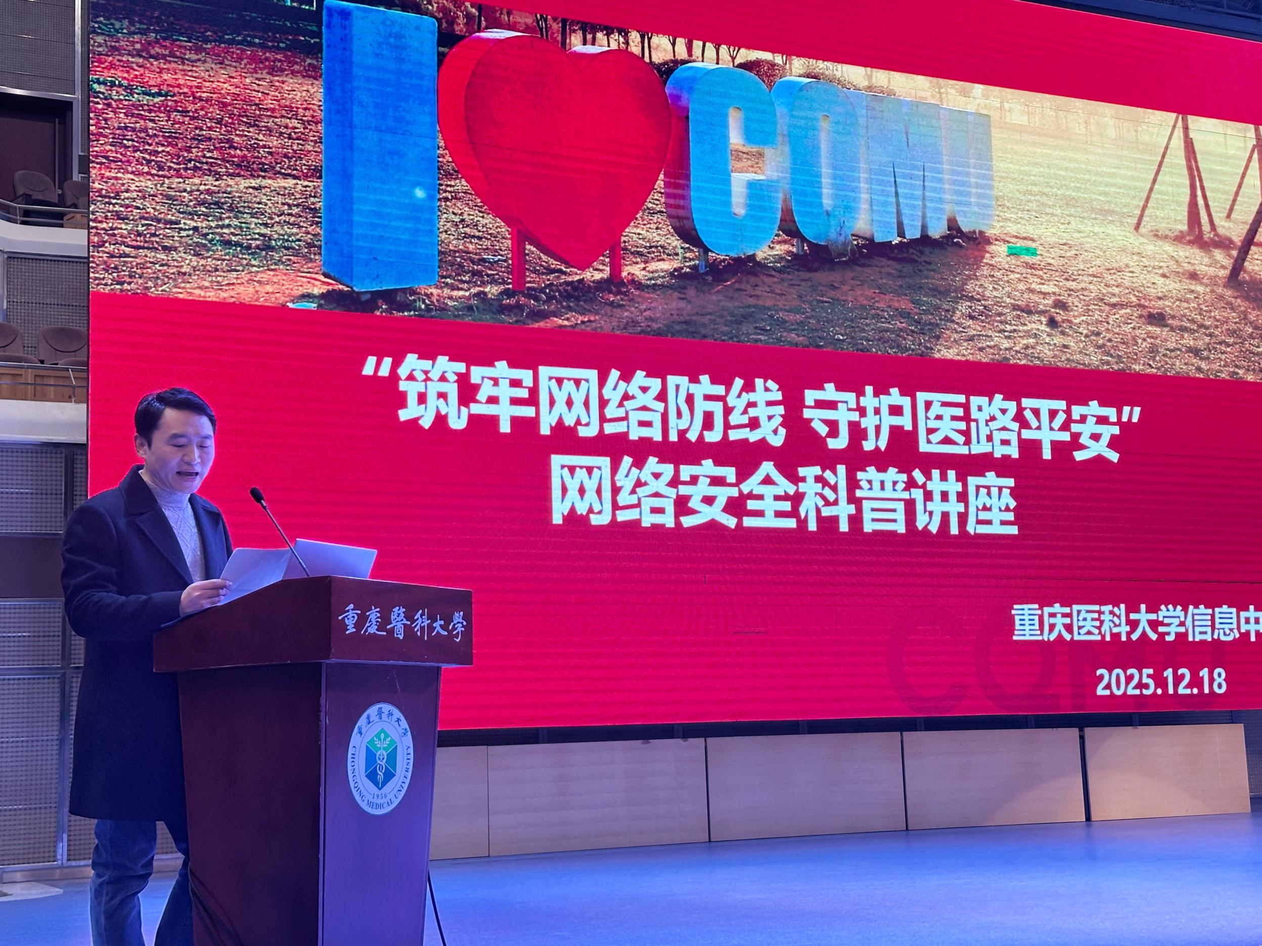 为进一步提升乐鱼在线平台师生网络安全意识,强化校园网络安全防护能力,切实保障网络信息安全,12月18日,我校特邀高新公安分局网安支队副支队长何永光开展主题为“筑牢网络防线,守护医路平安”的网络安全科普讲座。讲座由信息中心网络安全与运维管理科科长杨庆涛主持,各学院师生代表参与此次活动。