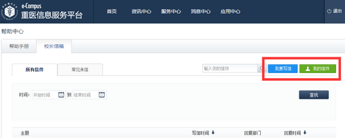 点击”我的信件”可以查看本人发出的信件,点击”我要写信”,可以发送信件到校长信箱。