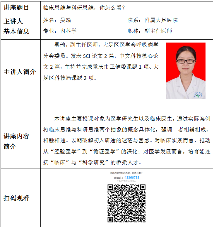 地址:重庆市渝中区医学院路1号