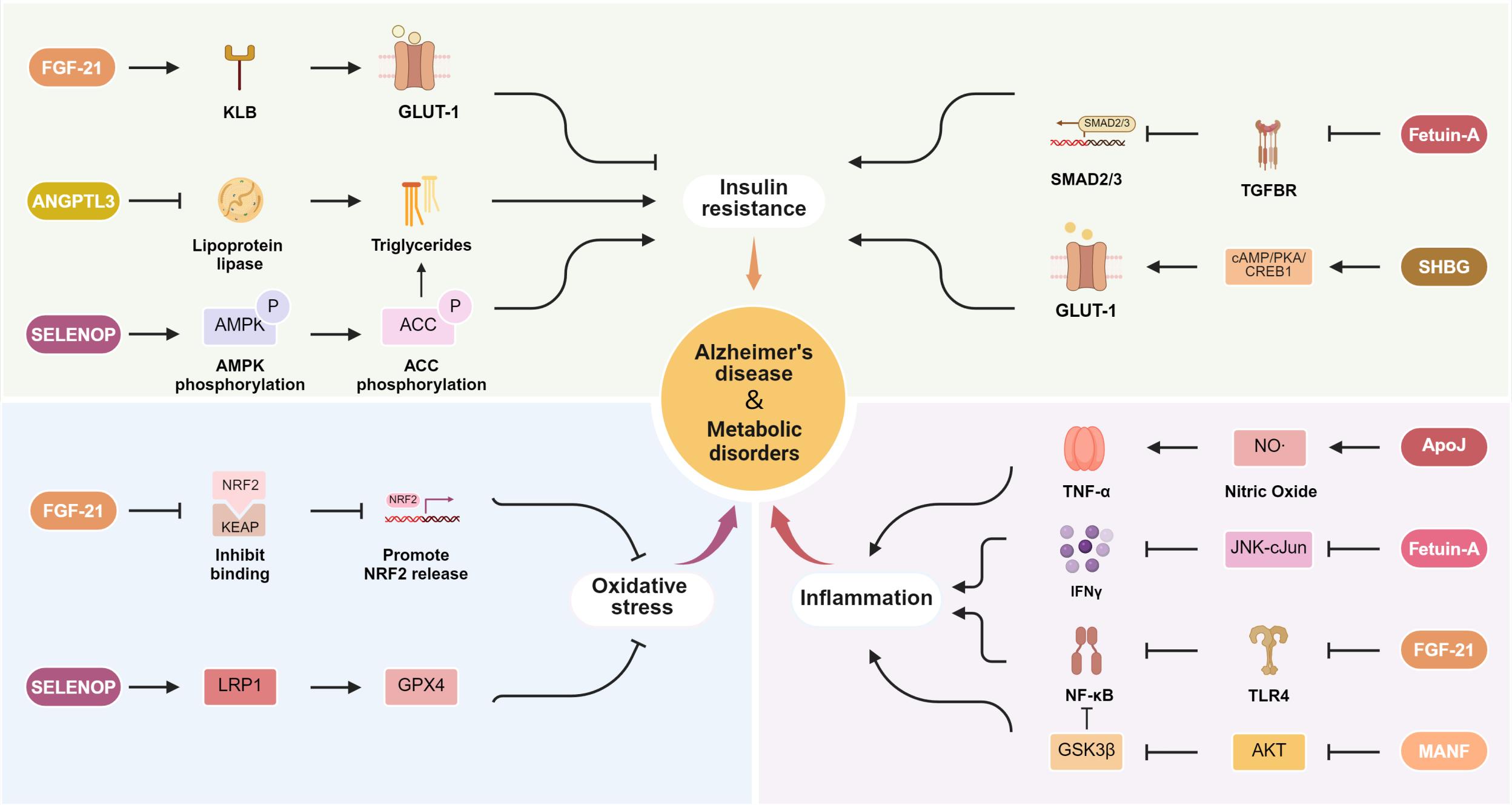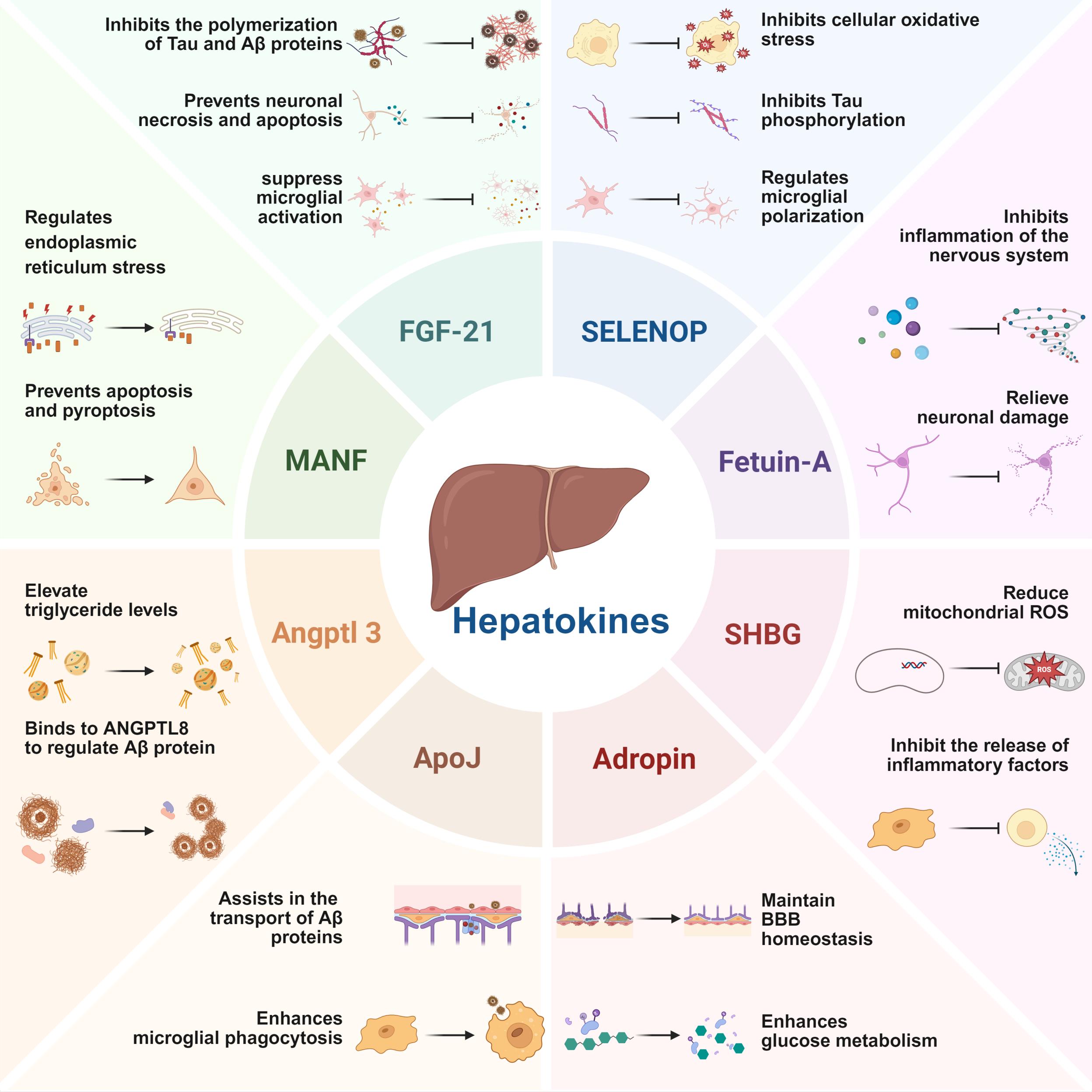 图3.肝细胞因子在阿尔茨海默病和代谢紊乱中的桥接作用